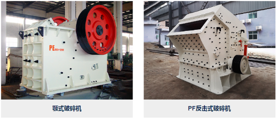 二段中碎设备需根据物料的硬度选择,前者反击式破碎机比较适用于中低硬度,抗压强度低于350兆帕的物料。