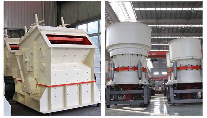 2、中、细碎设备:圆锥破碎机、反击式破碎机、冲击式破碎机