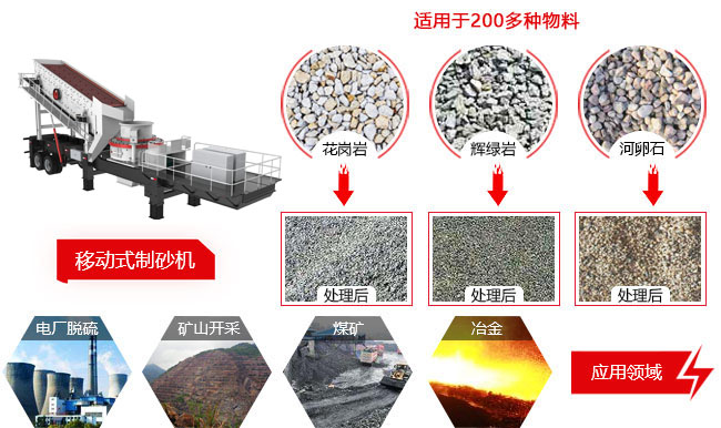 (1)移动速度快,直达原料所在地,无需打桩就可投产,可实现鹅卵石的就地破碎制砂;